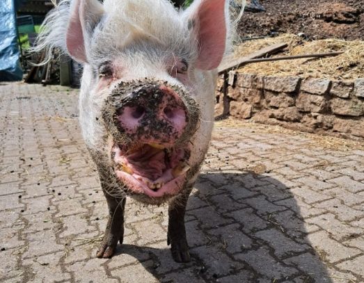 Gruuuunz hallo ich bin Babe und ich habe IMMER Hunger. Zum Glück hat mich eine Frau gekauft und ins Tierasyl Waldheim vermittelt, sonst wäre ich jetzt bestimmt schon ........ ich traue es gar nicht auszusprechen; Schinken. Hier im Tierasyl darf ich das Leben geniessen, draussen wühlen und drinnen schlafen und vor allem, den ganzen Tag essen !! Wenn Du jetzt noch mein Paten-Gotti oder Paten-Götti wirst, ist mein Leben schlicht und einfach; PERFEKT