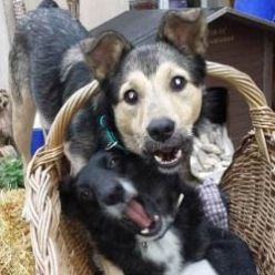 Die blinde Bambi (oben) und der dreibeinige Sunny haben Spass